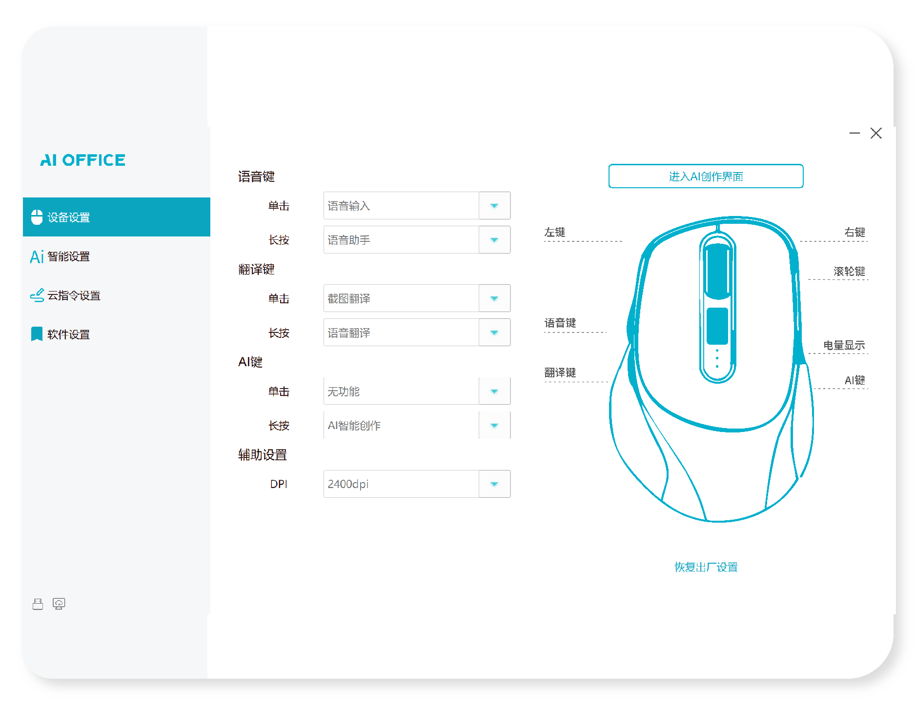 Klicko 配备 6 个功能按键,并支持 800 至 4000 DPI 的可调灵敏度,让你根据工作需求灵活调整性能。